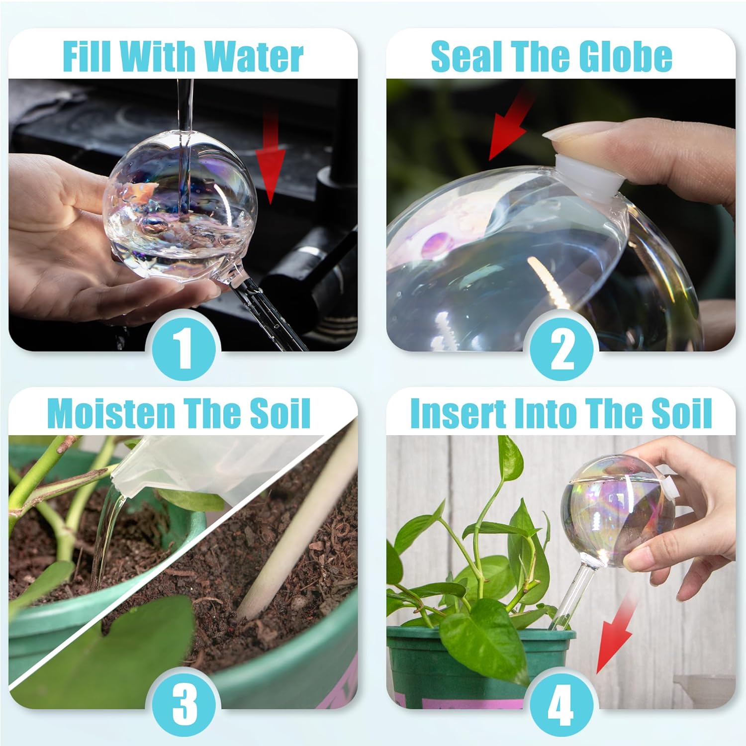 - AUTOMATIC WATERING MADE EASY – Each globe slowly releases water into the soil as needed, keeping your plants hydrated for days. No timers, batteries, or guesswork required—perfect for daily use or while you’re away.